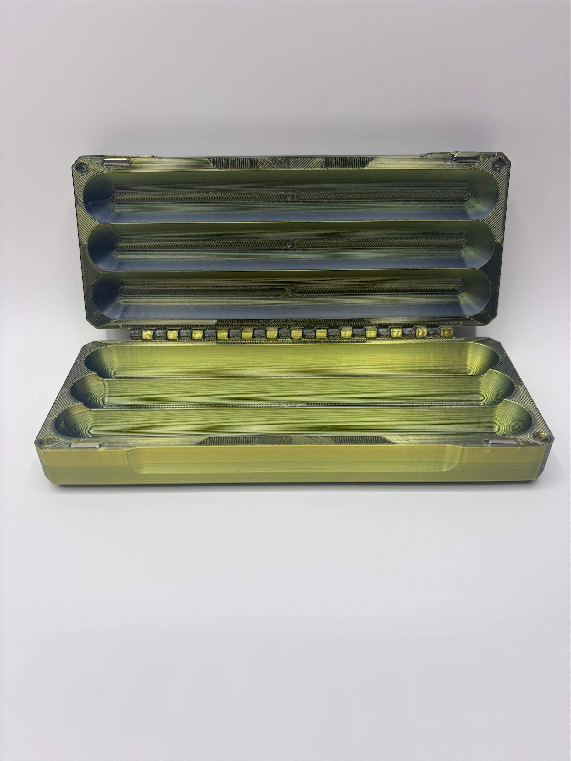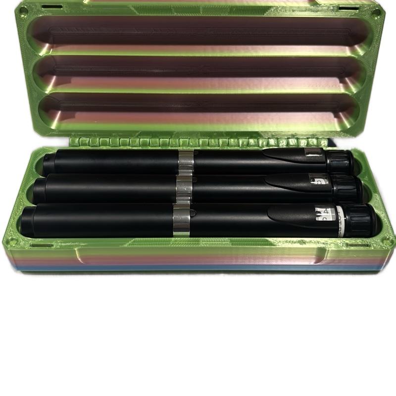 Elevate your injection pen storage with the V2 Injection Pen Holder, available in 3 or 5 slots to suit your needs. Designed to fit most pens up to 155mm x 18mm, it features snug half-round divots that keep each pen secure and organized. The magnetic closure ensures the lid stays firmly shut, protecting your pens from damage while maintaining a sleek, stylish appearance. Choose from over a dozen different colors at check out. Pens not included. Allow 1–2 business days for handling.